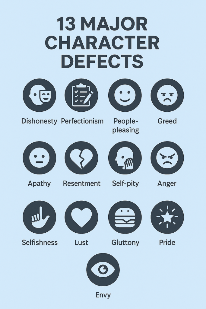 Character defects can feel overwhelming at first glance—but they are also doorways to self-awareness, emotional growth, and long-lasting change. Each defect points to an unmet need, a hidden fear, or a long-practiced habit that once offered protection. When we begin to acknowledge these patterns with compassion and curiosity, we take our first steps toward transformation.